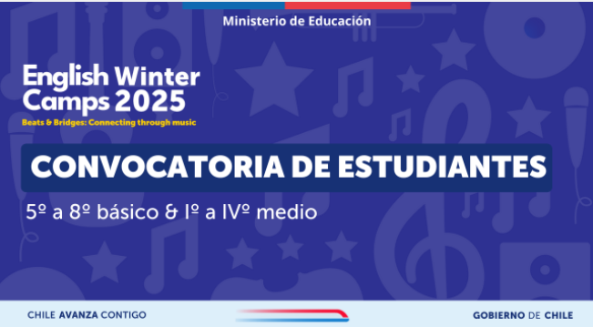 ¿Estás entre 5° básico y 4° medio? ¡Entonces prepárate para vivir una semana inolvidable en los English Winter Camps 2025, organizados por el Programa Inglés Abre Puertas del Ministerio de Educación y la Fundación Instituto Chileno Norteamericano de Cultura de Santiago!